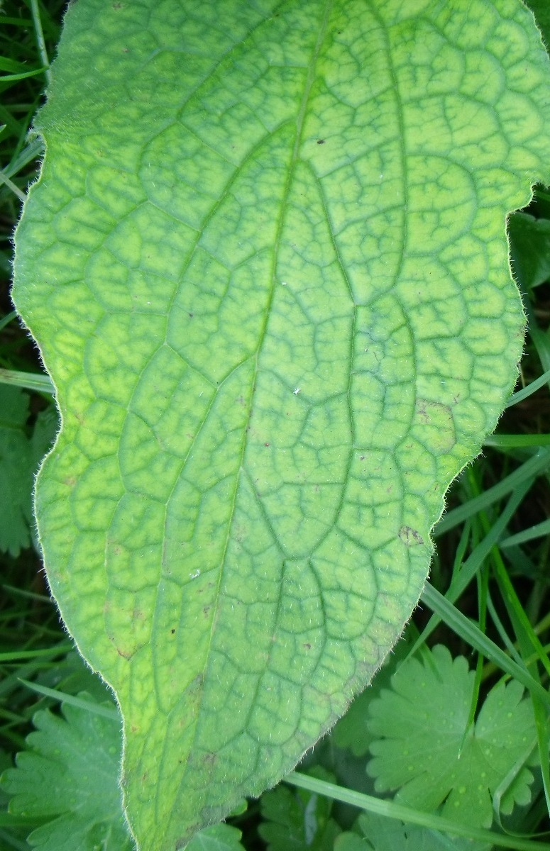 Comfrey leaf tea smells rich and earthy, rather like that of nettle in fact, though the colour is more of a soft, earthy brown. Within seconds of pouring, a rich, rainbow coloured surface has developed on the top of the tea, and the mucilage can clearly be seen adhering to the sides of the cup. The flavour of it bears little resemblance to nettle, possessing instead a slightly similar taste to that of dried Borage, its close cousin. Like Borage, the tea tastes cooling and dispersing, and seems to weigh a little heavily on my chest – again, I’m well aware that this is because my temperament tends to be cold and moist, and any more cold added tends to sit like a lead weight on me. Unlike Borage, however, there is less of a sense of the held breath, more a sense of astringency as the herb gently dries back some of the excess moisture. I can also feel the tea slowly seeping its way down to my stomach. The overall feeling is rather pleasant, much more comforting than Borage but no less effective and powerful. Comfrey is like a steadying hand on the shoulder – and is not a warrior herb, not in the way of Borage, with its encouragement towards clarity and calm assessment of a situation, whilst still being poised on the brink of action. Instead, Comfrey is like the grandmother, wise and calm and urging a feet on the ground, compassionate appraisal of a situation that will still not hesitate to give a smack if a smack is called for. After all, sometimes grandchildren need discipline! Interestingly, I can still feel Comfrey around my eyes, relaxing tense facial muscles, so perhaps it has something of the same gifts as its cousin after all? The astringent qualities come through a few seconds after a mouthful of tea, as a slight dryness develops in the mouth. I can feel myself breathing more easily – perhaps it is time to start using Comfrey as well as Plantain for the lungs, instead of sticking to what I have done previously, using Plantain for the lungs and Comfrey for the stomach. Again, I can feel Comfrey at work, reinforcing boundaries and pushing moisture out of the lungs. I have no tincture here at present, so will have to forego learning more of this herb through tasting the herb in alcohol. Perhaps it is time I added grandmother Comfrey to my dispensary! I do love these plant tasting sessions, such a wonderful way to add to my knowledge base and learn more about an individual plant. It is at times like this that I begin to ponder taking the time to conduct a few Goethian plant studies instead of merely dipping a toe in the water and declaring myself too busy.