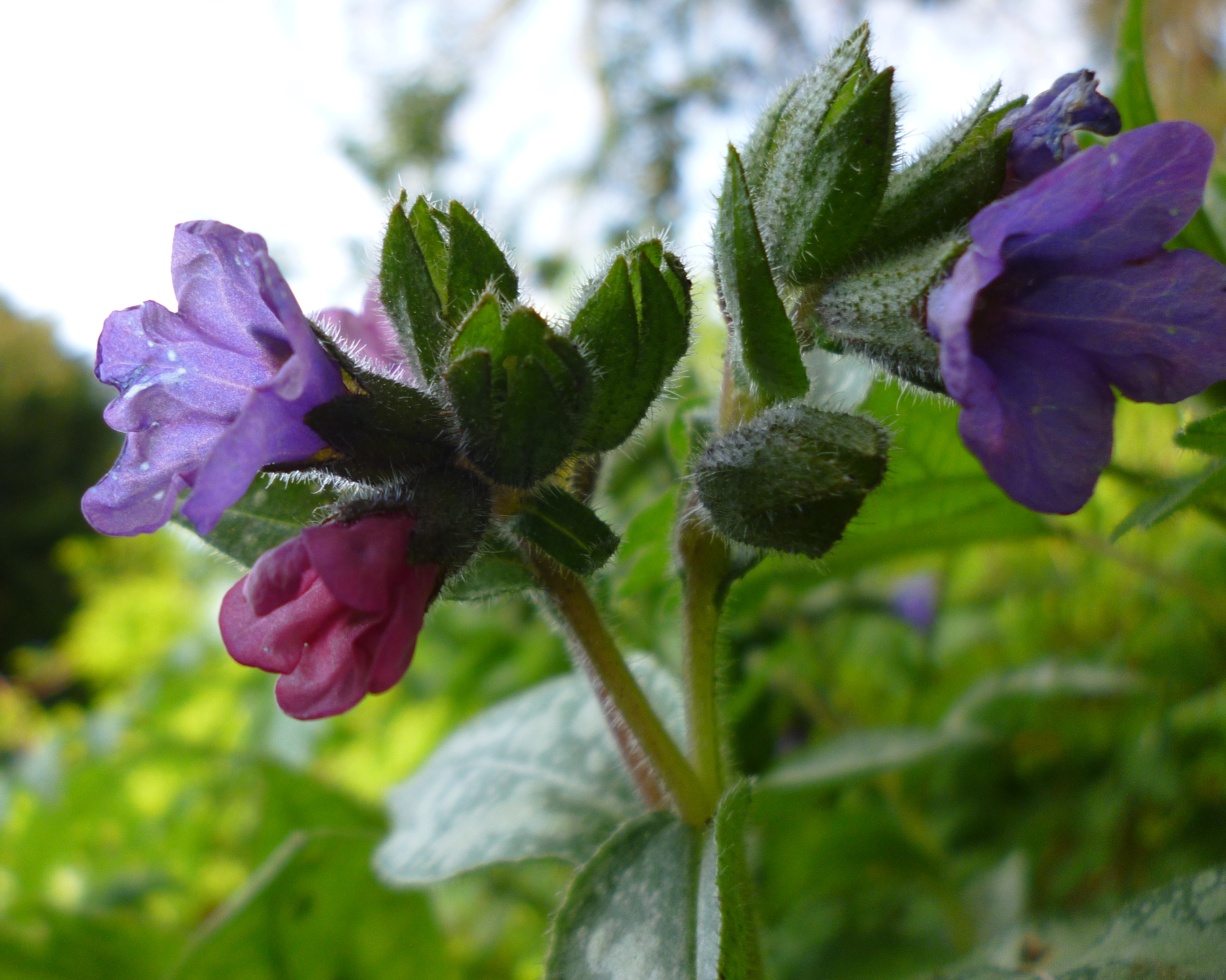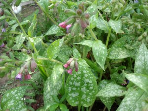 When I first became interested in herbs, nearly 15 years ago, Lungwort, the intriguing spotted member of the borage family, was one of the first plants to really captivate me. Something about its woodland and shade loving tendencies, the spotted leaves, the flowers that change colour so charmingly, really piqued my interest and kindled imagination, and the name itself – Lungwort – really fascinated me at the beginning of my descent into the murky cauldron of herbalism. As is typical with many of the herbs with an old and venerable history behind them, Lungwort has many different folk names, including Jerusalem Cowslip, Soldiers and Sailors, Llysiau’r ysgyfaint, Spotted Dog, Maple Lungwort, Spotted Comfrey. Herb of Mary, Virgin Mary’s Mildrops and Bethlehem Sage.